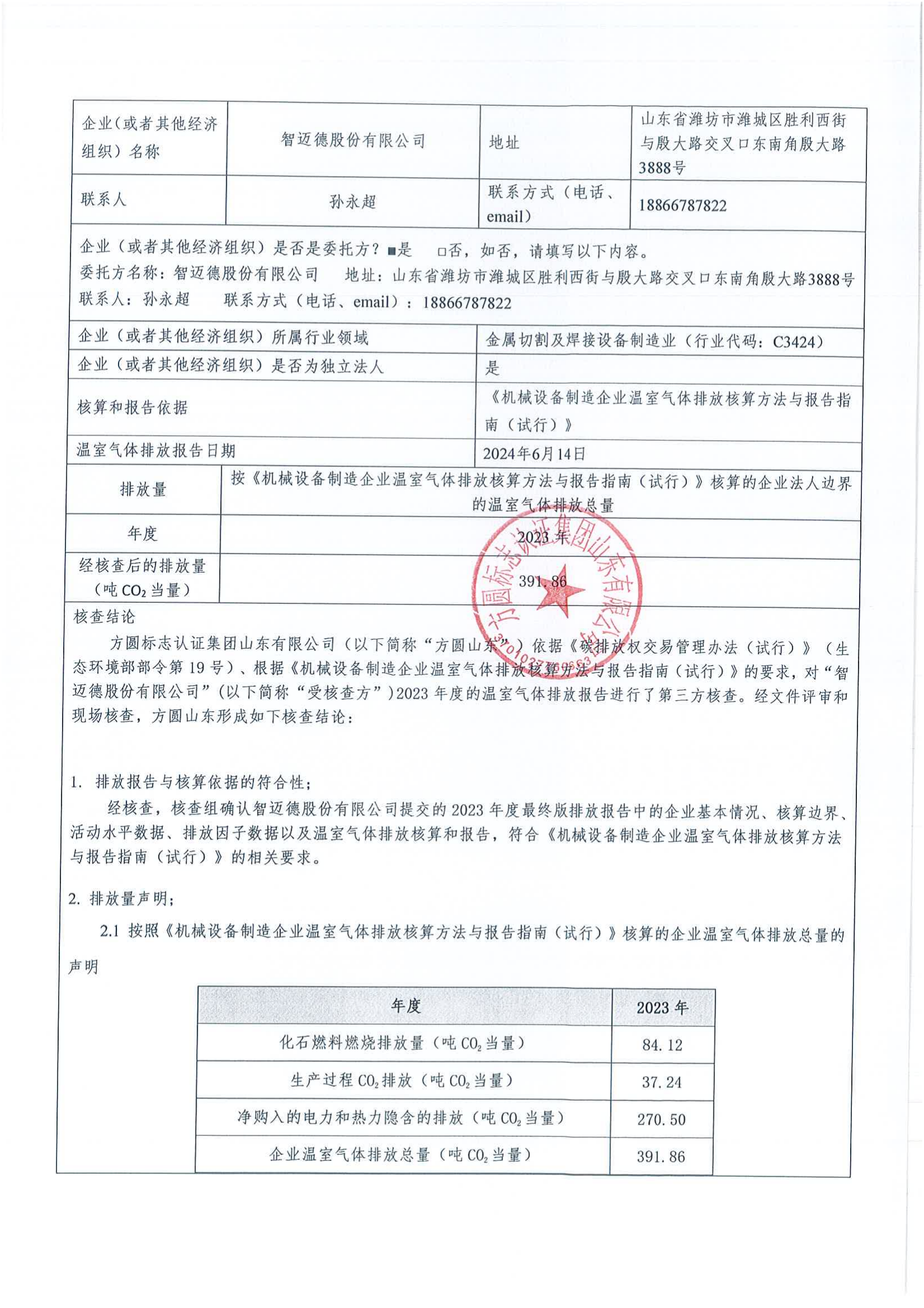 智邁德股份有限公司2023年度溫室氣體排放核查報告