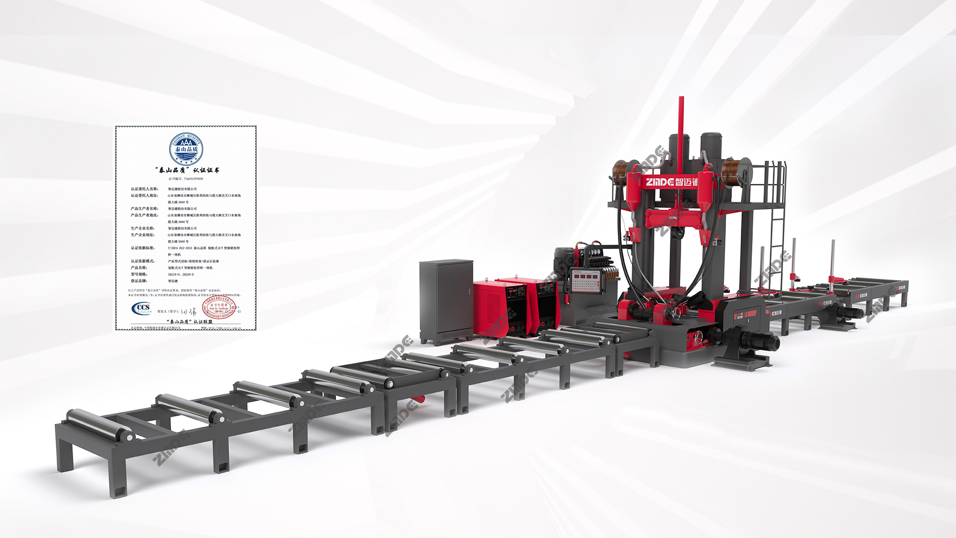 ① 智能版一體機(jī)配備智能翼板夾緊裝置、智能平板上料扶正裝置、智能拖對系統(tǒng)、智能點(diǎn)固系統(tǒng)、智能檢測系統(tǒng)、智能焊劑下料系統(tǒng)、智能矯正系統(tǒng)、智能托起裝置,生產(chǎn)效率更高。
