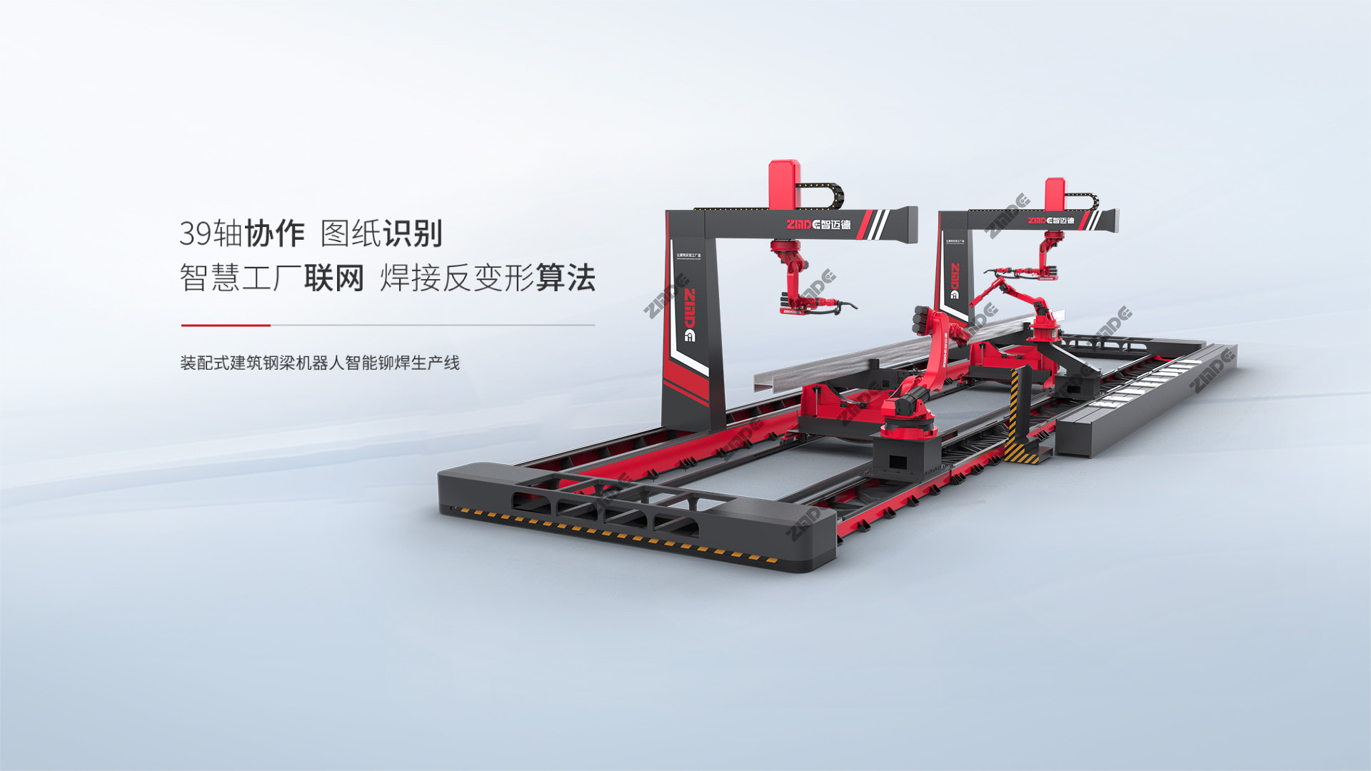 智邁德裝配式建筑鋼梁機器人智能鉚焊生產線具有自主知識產權,采用K-TIG專利焊接技術及智能控制軟件系統,適用于多品種、小批量構件焊接,不但適用于狹小空間焊接,而且與智邁德裝配式建筑鋼梁全自動一次成型生產線搭配組合,有效滿足客戶各類型鋼梁加工需求,加工效率提升,大幅節省人工成本。